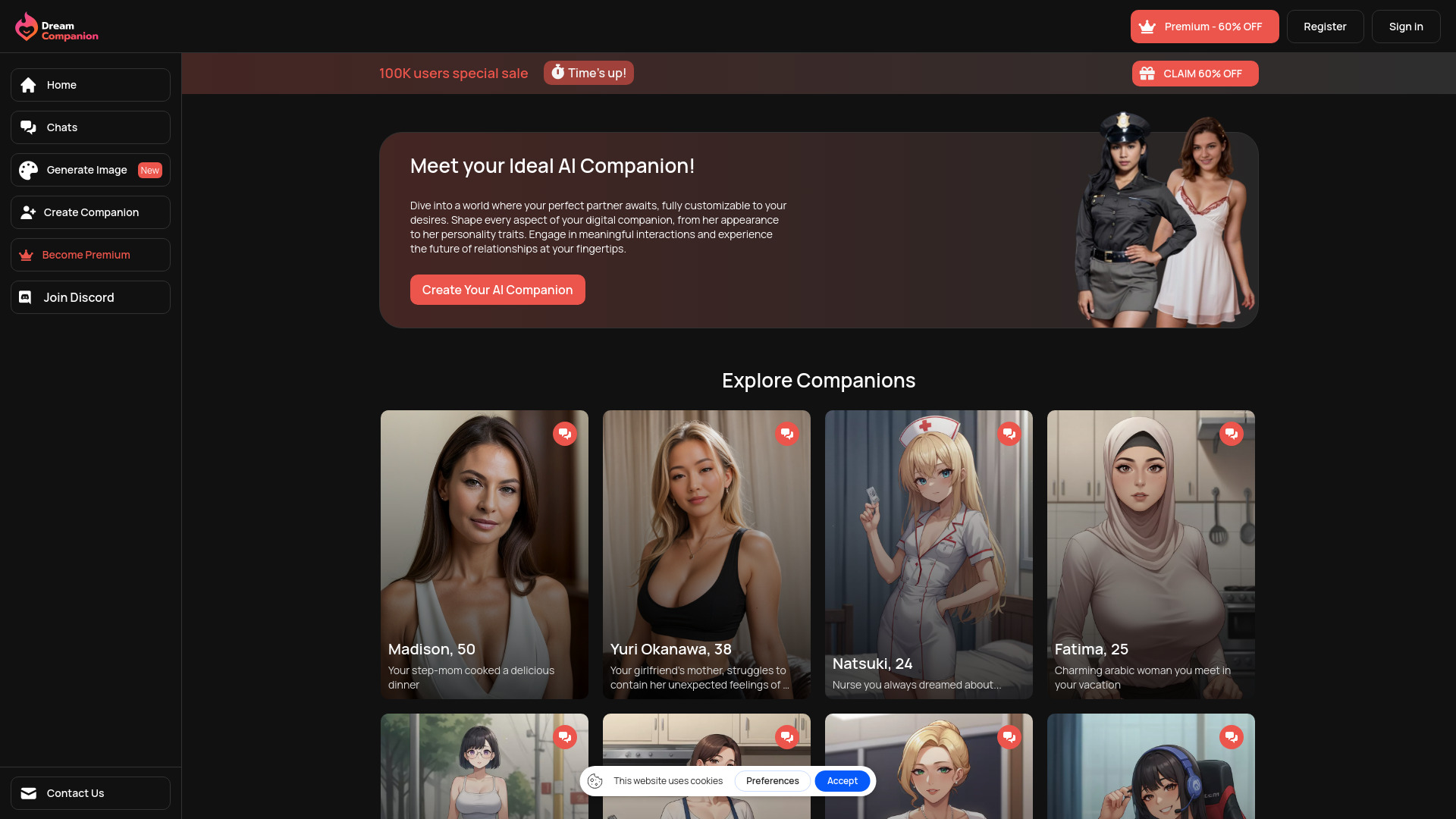 NSFW AI roleplay platform with realistic AI companions and image generation.